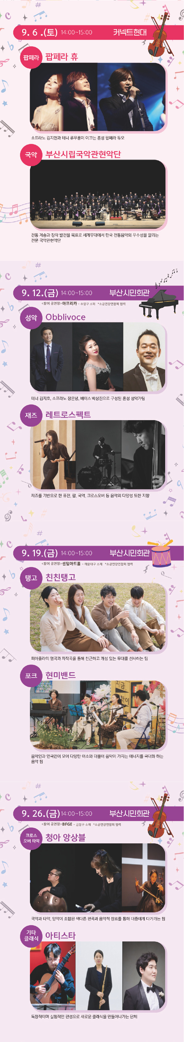 - 부산 지역 예술인 총 14개 단체 참여