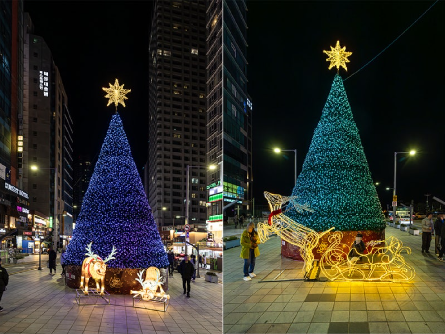 3m, 5m, 8m 세 가지 크기의 트리가 크리스마스와 연말연시 분위기를 한층 돋워줍니다! 작은 트리 앞에서는 아이들이, 중간 트리 앞에서는 가족이, 대형 트리 앞에서는 커플들이 인생샷을 건지는 필수 코스랍니다! 🎅