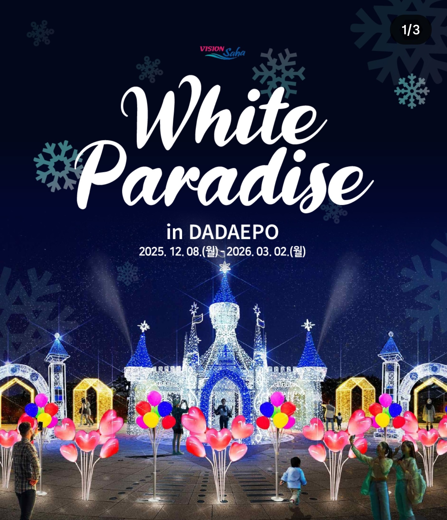 - 포토존: 화이트캐슬, 뉴 이어, 산책로 조명터널 3곳