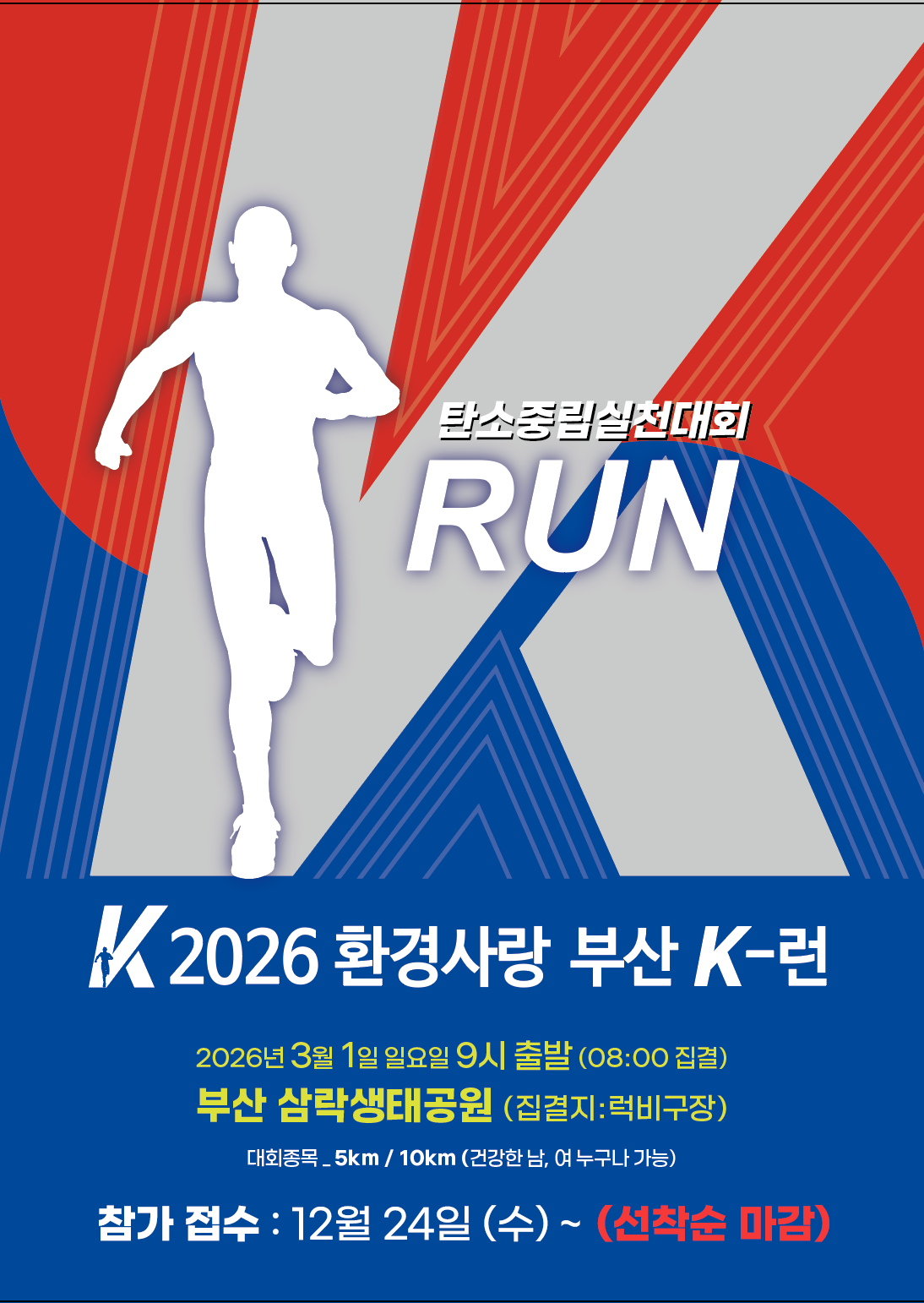 해운대 바다를 바라보며 달리는 특별한 러닝 대회! 환경도 지키고 건강도 챙기는 2026 환경사랑 부산 K 런에 여러분을 초대합니다. 🌊